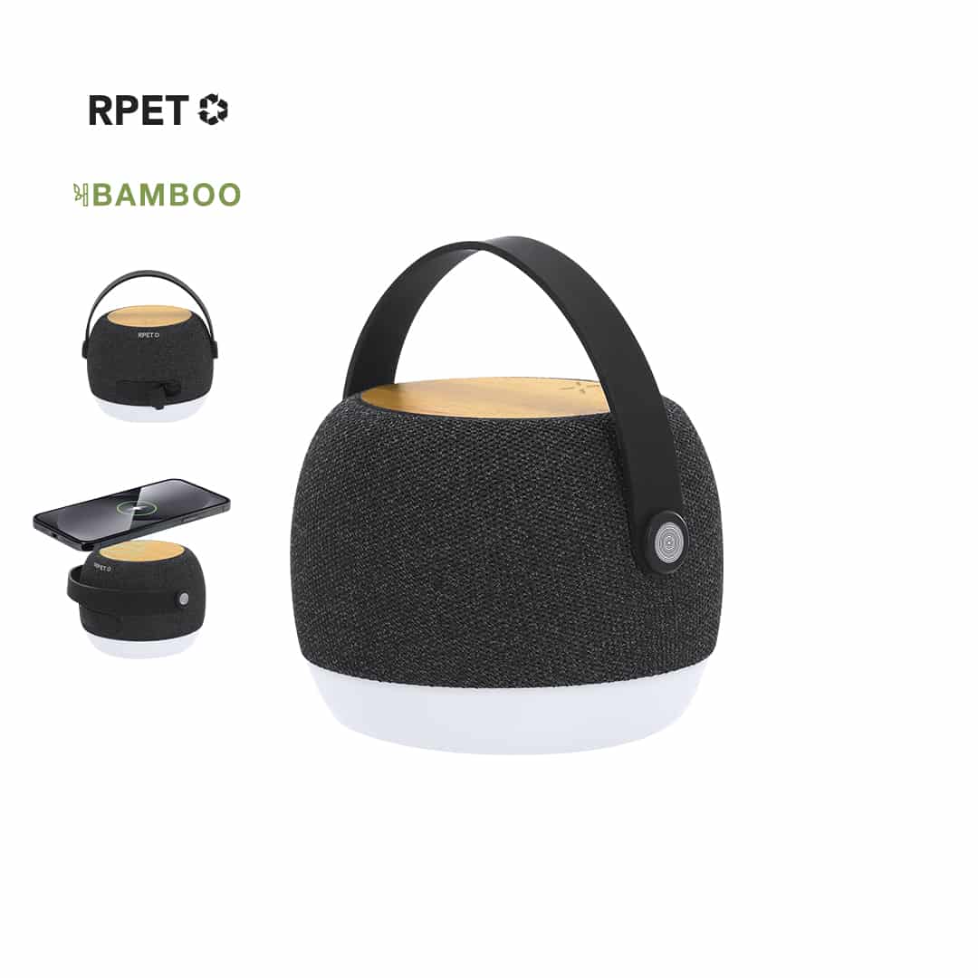 Descubre el Altavoz Cargador Sprit, un innovador altavoz Bluetooth que combina carga inalámbrica de 15W con un diseño sostenible en RPET y bambú. Su sistema de iluminación con 12 LEDs se sincroniza al ritmo de tu música, creando una atmósfera festiva ideal para cualquier ocasión. Con una práctica asa de silicona, este altavoz es fácil de llevar a donde quieras. Además, al estar fabricado con materiales reciclados y naturales, contribuyes a un planeta más limpio y sostenible. ¡Haz que cada momento sea especial con el Altavoz Cargador Sprit!