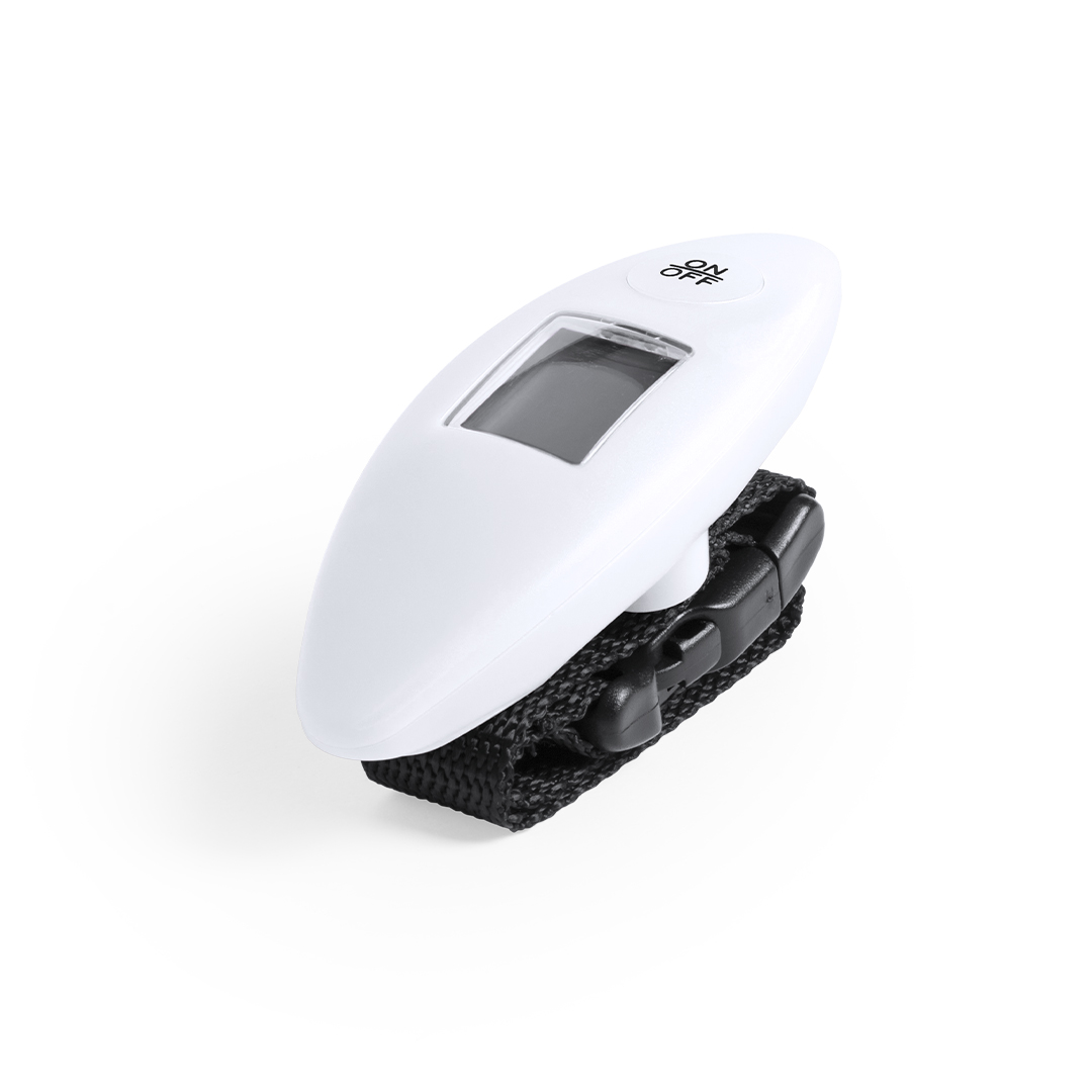 Práctica báscula digital para equipaje en vivos colores. Con pila de botón incluida y peso máximo de 40kg.