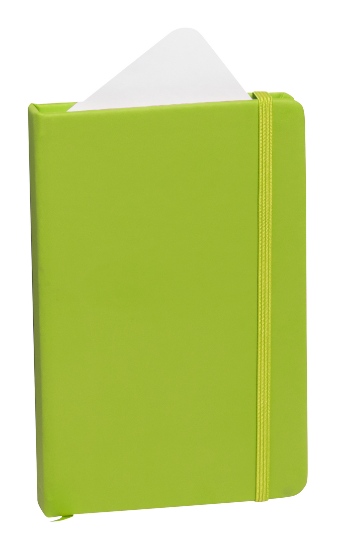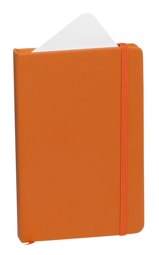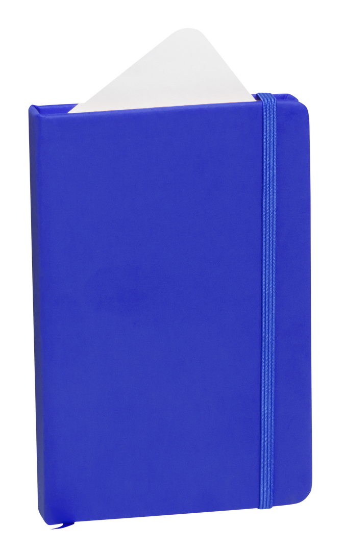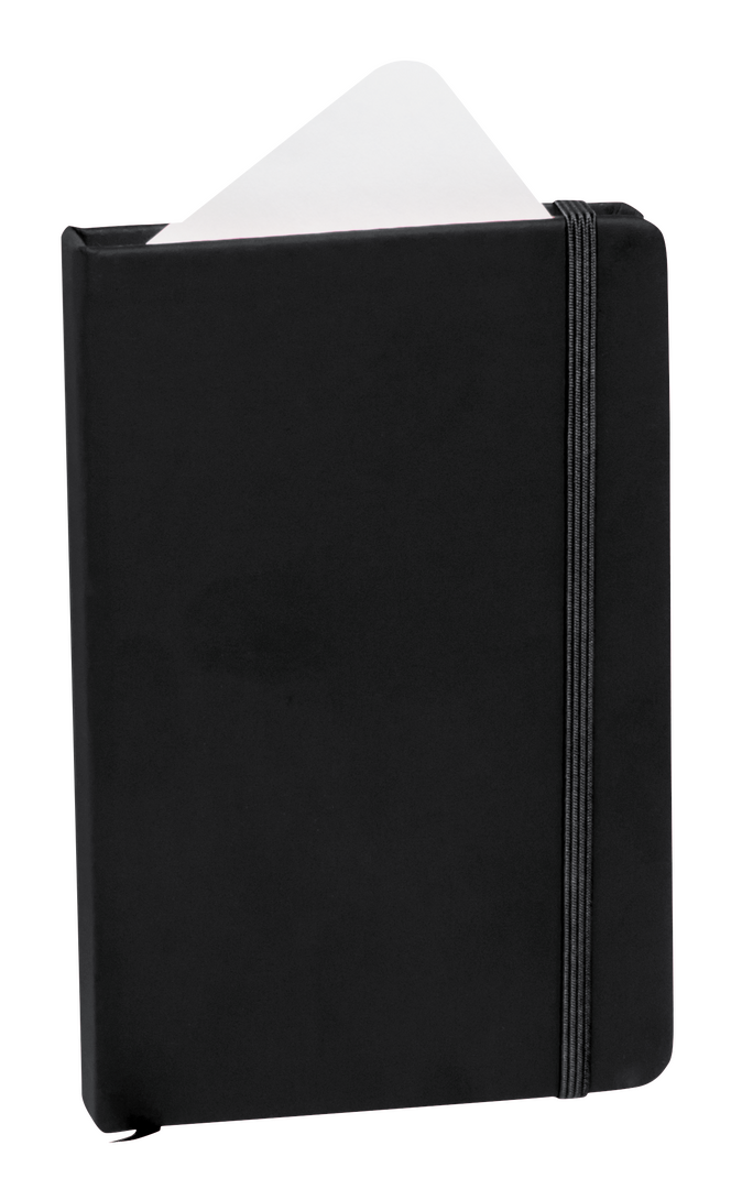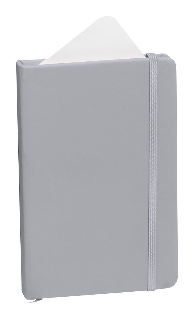 Bloc de notas con tapas duras fabricado en polipiel de suave tacto. Con marcapáginas disponible en variada gama de colores y elástico de cierre a juego. Interior con 100 hojas lisas.