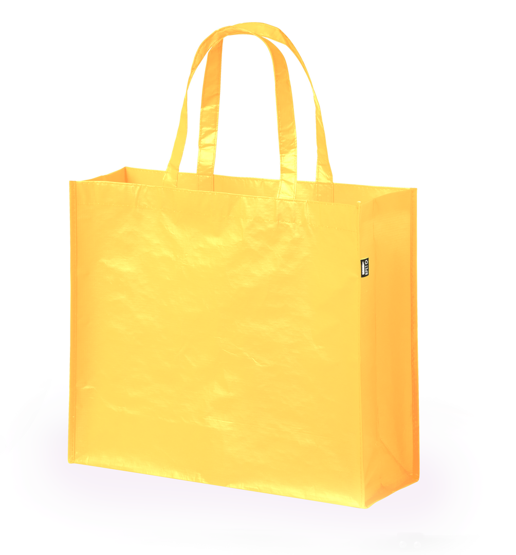 Bolsa de línea nature en material RPET, elaborado a partir de plástico reciclado, para así fomentar la reutilización de residuos plásticos y ayudar a la sostenibilidad del planeta. En material laminado de 105 g/m2 de acabado mate, con asas medianas y costuras y base reforzadas. Resistencia hasta 5 kg de peso. Disponible en variada gama de colores, con etiqueta distintivo RPET.