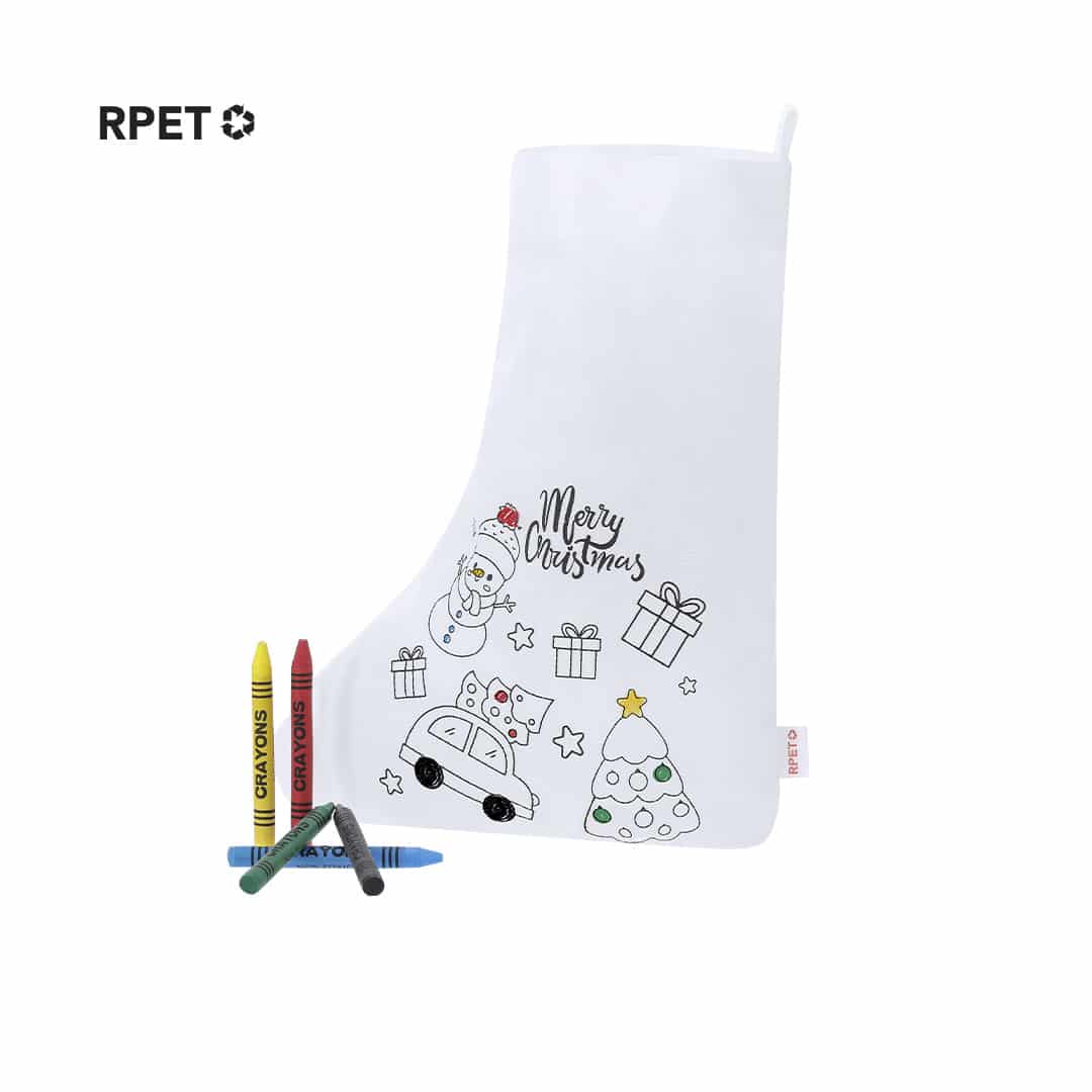 Descubre el Calcetín Mordy, un divertido calcetín de non-woven RPET en color blanco, ideal para dar rienda suelta a la creatividad con ceras. Viene con un diseño festivo que incluye encantadores dibujos navideños y 5 ceras de colores variados. Su práctico acabado termosellado y la cinta para colgar lo hacen perfecto para decorar tu hogar estas fiestas. Además, al estar fabricado con material RPET, contribuyes a la sostenibilidad del planeta al utilizar plástico reciclado. ¡Haz de esta Navidad una celebración más eco-amigable!