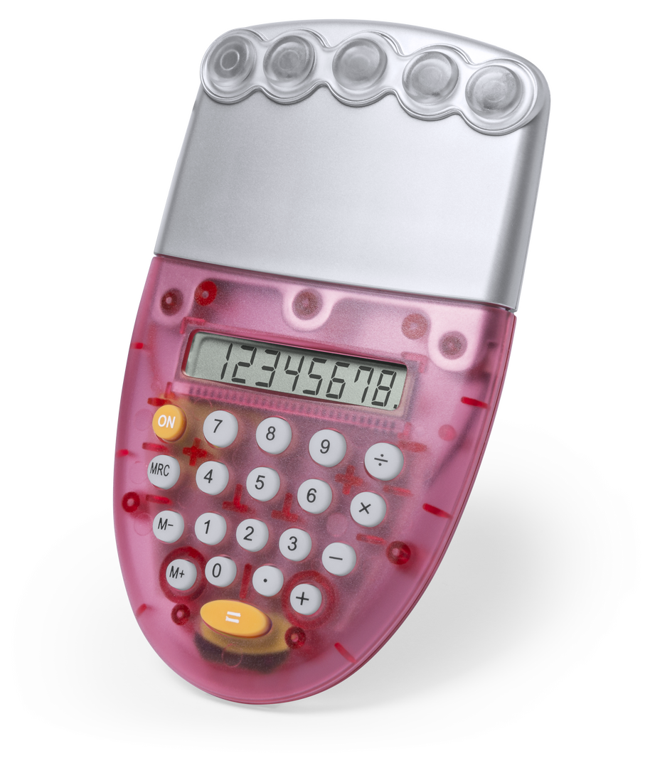 Calculadora ecológica de 8 dígitos en original diseño bicolor y funcionamiento con agua. Teclas de suave acabado, dosificador incluido y presentada en caja individual.