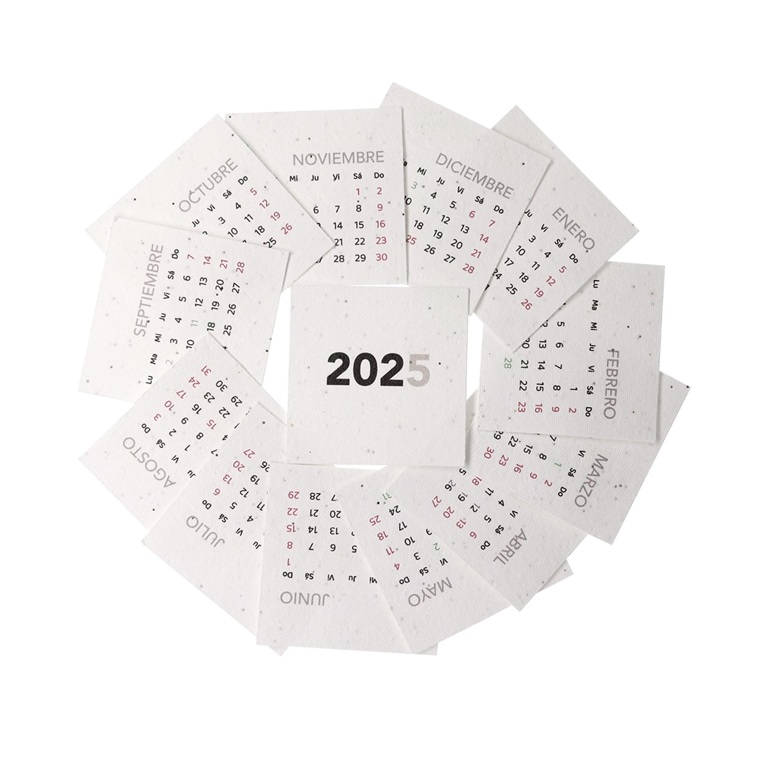 Descubre el Calendario Sobremesa Semilla Krily, un innovador calendario plantable que no solo organiza tus días, sino que también contribuye al medio ambiente. Fabricado en papel de semilla, incluye 13 hojas que contienen semillas de petunia de colores variados. Tras su uso, podrás plantar cada hoja y disfrutar de hermosas flores en tu hogar. Con un diseño práctico que destaca las festividades nacionales en rojo y las autonómicas en verde, este calendario se presenta en una elegante caja de cartón. Es el regalo corporativo perfecto para inspirar sostenibilidad y creatividad en tu equipo o clientes.