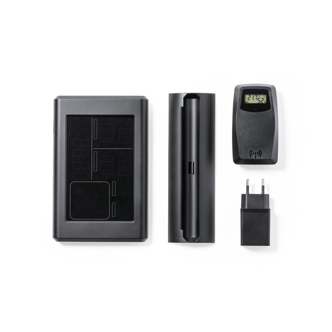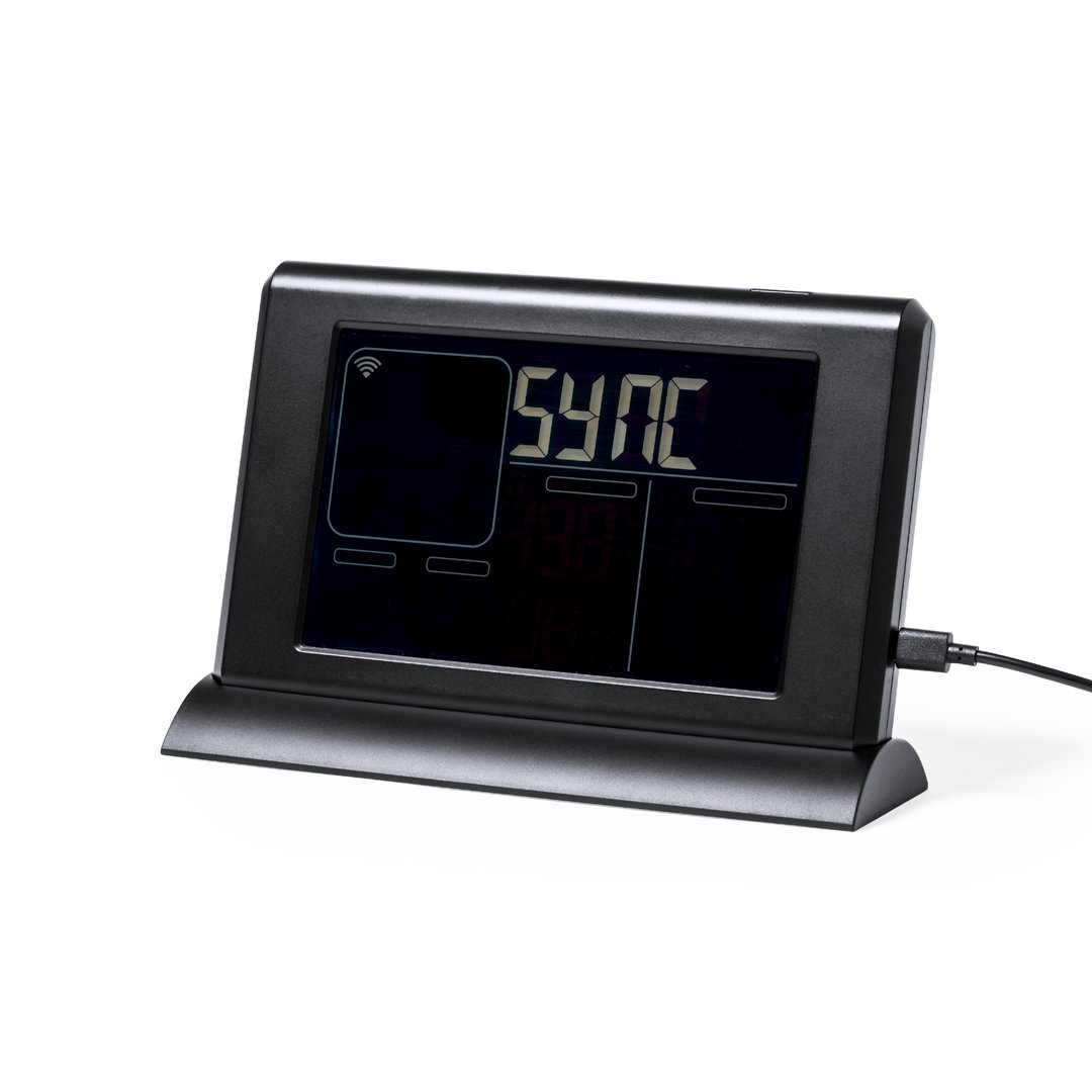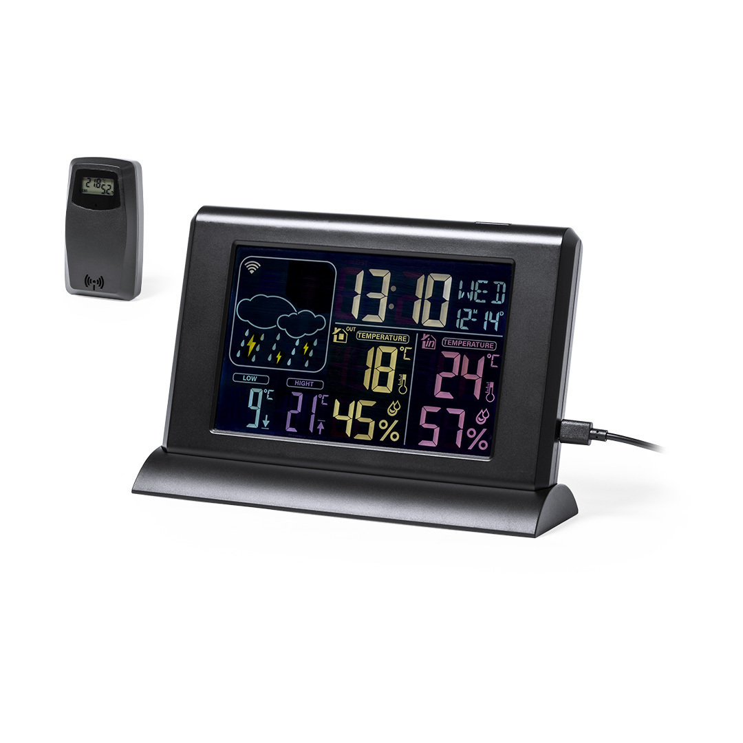 Descubre la Estación Meteorológica Lautar, un artículo promocional premium ideal para tu estrategia de merchandising. Fabricada en resistente ABS con un elegante acabado negro satinado, este regalo corporativo destaca por su pantalla retroiluminada de fácil lectura y gráficos en color. Equipado con sensores inalámbricos para medir temperatura y humedad tanto en el interior como en el exterior, así como funciones de alarma y calendario. Compatible con iOS y Android a través de una app para control remoto, este artículo publicitario es perfecto para mantener a tu equipo informado. Presentado en una atractiva caja kraft, incluye adaptador de corriente y manual en español e inglés. ¡Un regalo funcional y atractivo para tus clientes!