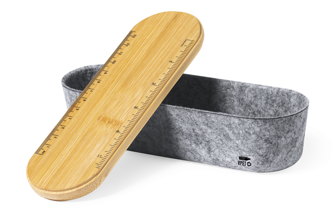 Descubre el Estuche Glaston, un innovador artículo promocional ideal para tu empresa. Con su elegante combinación de tapa de bambú y cuerpo de fieltro RPET, este estuche no solo destaca por su diseño eco-amigable, sino que también es un regalo corporativo perfecto para reforzar tu imagen de marca. Su funcionalidad incluye una regla en la tapa y un soporte para smartphone, convirtiéndolo en una herramienta útil y atractiva. Ideal para merchandising promocional que deja una huella positiva.