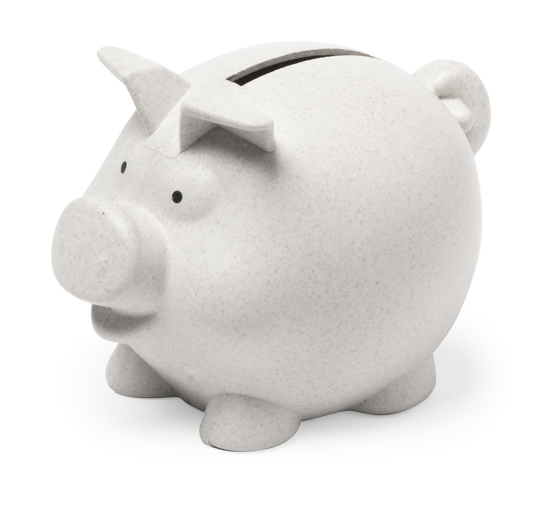 Hucha de línea nature con forma de cerdito, para ahorrar a la vez que se cuida del medio ambiente.
