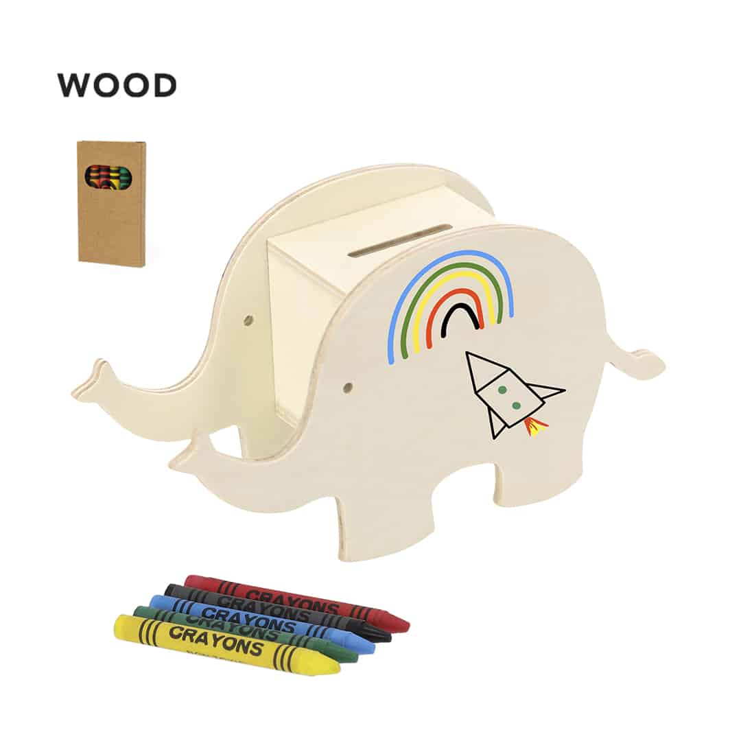 Descubre la encantadora Hucha Yilmax, elaborada en madera natural y diseñada con adorables figuras de animales. Este regalo perfecto incluye ceras de colores, permitiendo que cada niño personalice su hucha de manera única. Además, cuenta con un ingenioso agujero en la parte inferior que facilita el acceso a los ahorros sin necesidad de romperla. Ideal como regalo promocional para empresas que desean dejar una huella positiva en la infancia.