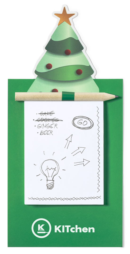 Descubre nuestro imán con bloc de notas en un encantador diseño de árbol navideño, ideal como artículo promocional para regalar a tus clientes. Con 40 hojas lisas y un lápiz de madera natural, es el regalo corporativo perfecto que combina funcionalidad y estilo, asegurando que tu marca esté siempre presente en el día a día de tus clientes. Potencia tu publicidad corporativa con este original merchandising promocional.