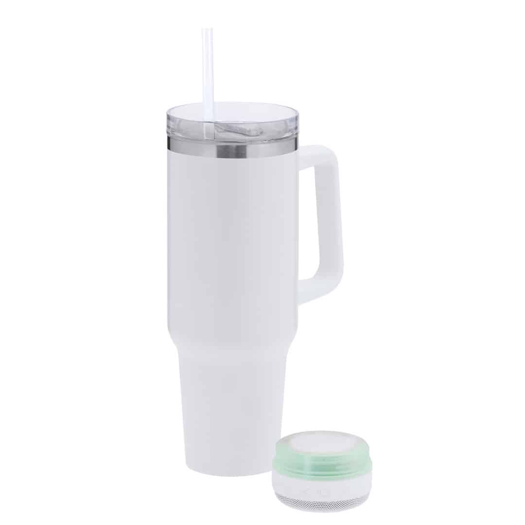Descubre la Jarra Térmica Altavoz Tracir, el complemento perfecto para disfrutar de tus bebidas favoritas mientras escuchas tu música. Con una capacidad de 1,25L, esta innovadora taza está fabricada en acero inoxidable de doble pared, garantizando la máxima durabilidad y un excelente aislamiento térmico. Su asa ergonómica y base antideslizante aseguran comodidad y estabilidad, mientras que el altavoz Bluetooth 5.3 de 3W extraíble te permite disfrutar de un sonido envolvente con iluminación LED RGB que se sincroniza con la música. Ideal para la oficina o el hogar, ¡no te quedes sin la tuya! Haz clic en el botón Comprar con Impresión para ver las opciones de marcado y personalización.