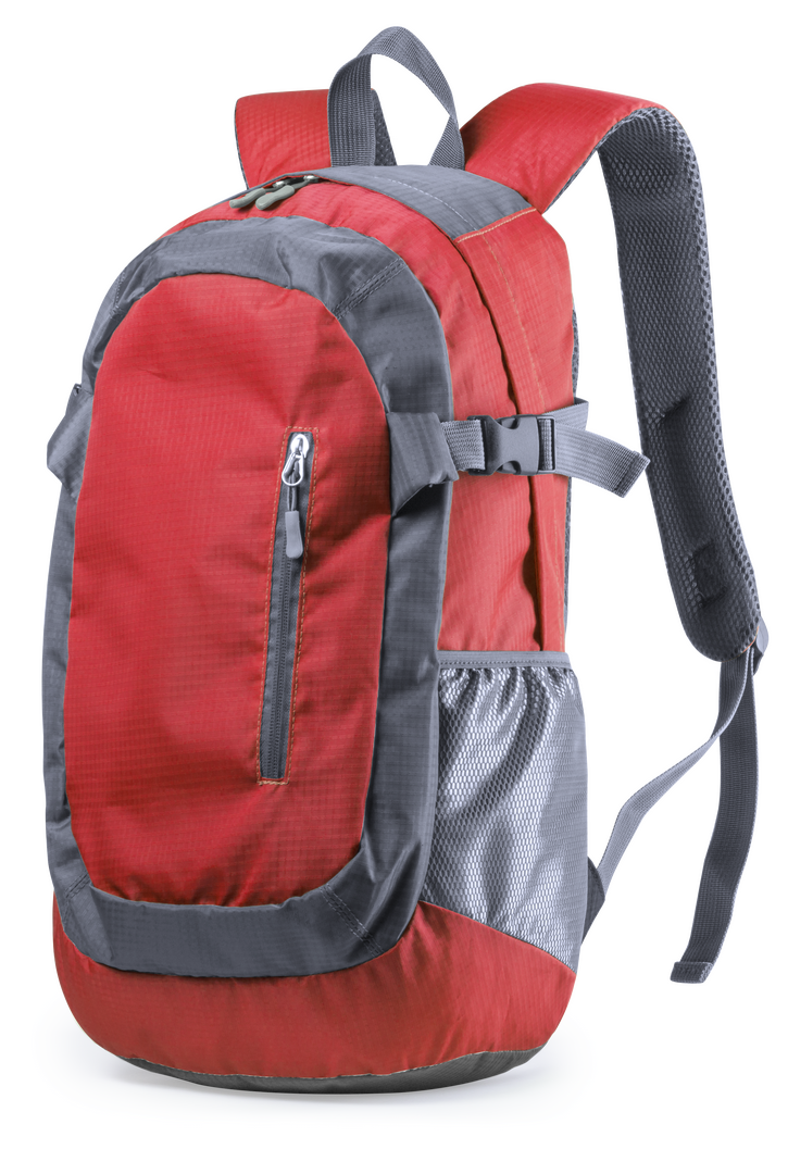 Mochila técnica en resistente combinación de poliéster 210D y ripstop, con una atractiva combinación de colores. Con cierre de cremallera de doble tirador metálico y bolsillos en frontal. Con refuerzos de nylon ajustables en los cierres y esquinas reforzadas. Espalda con acolchado ergonómico, cintas de hombros acolchadas con cintas de ajuste regulables y cierre de clic.