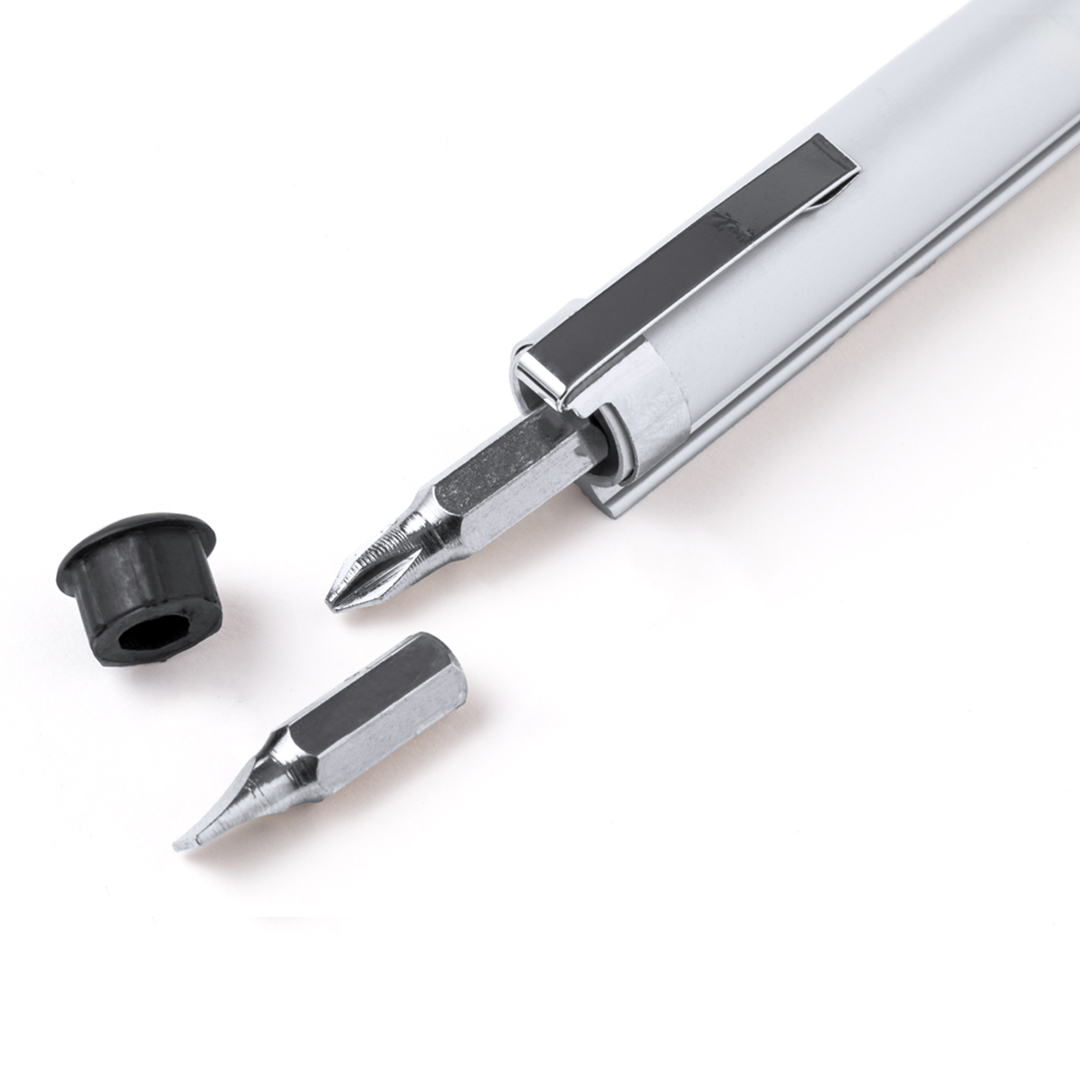 Descubre la multiherramienta Loulan, el regalo corporativo perfecto para impulsar tu estrategia de merchandising promocional. Fabricada en aluminio de alta calidad, cuenta con un nivel integrado y dos cabezales para destornillador (plano y Philips), ideal para cualquier tarea. Su elegante clip metálico cromado y presentación en caja de diseño kraft la convierten en un artículo publicitario atractivo y funcional, que dejará una impresión duradera en tus clientes y empleados.