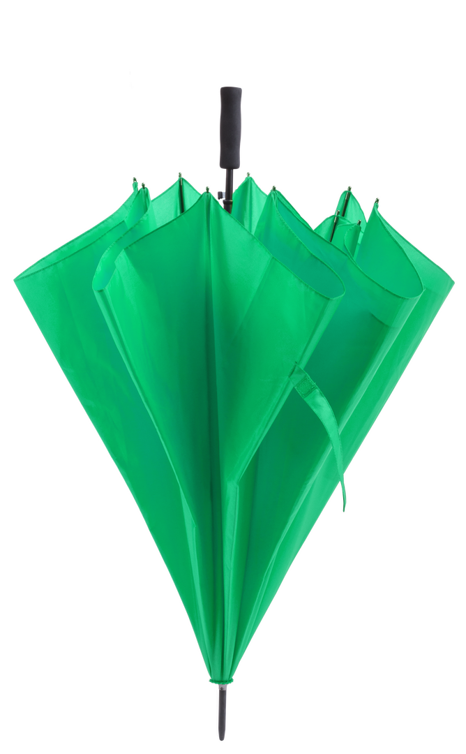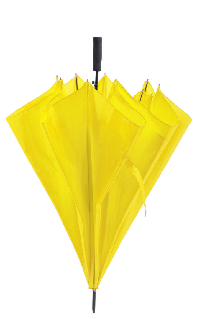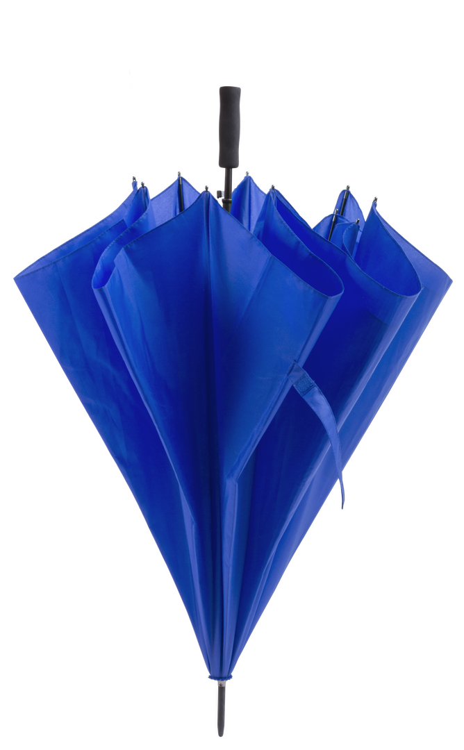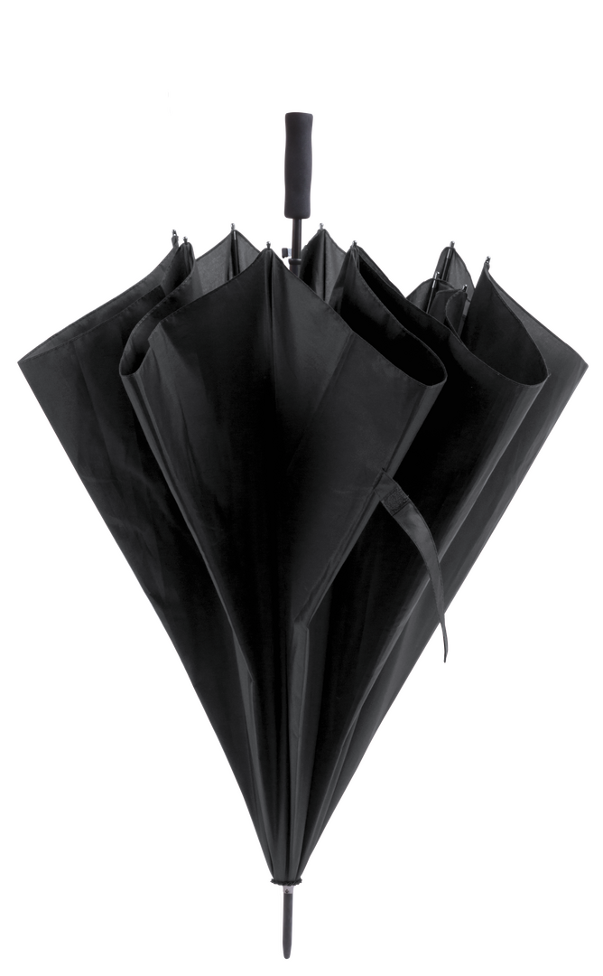 Paraguas de 8 paneles tamaño XL -130cm diámetro- con sistema antiviento. Apertura automática, en resistente poliéster y con varillas de fibra en color negro. Con mango acolchado de EVA y cierre de velcro. Disponible en extensa gama de colores.