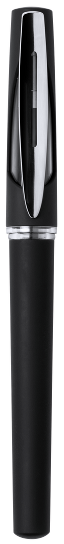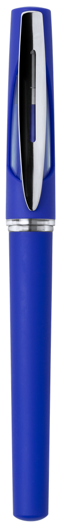 Roller de capucha de alegre diseño bicolor con cuerpo de suave acabado en llamativos colores y accesorios en color plateado brillante, con detalle transparente. Tinta gel azul.