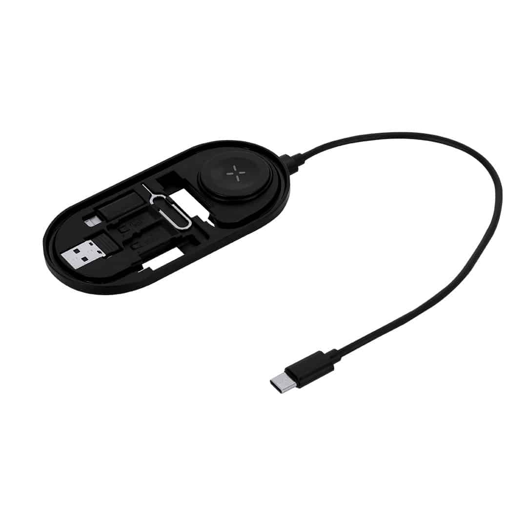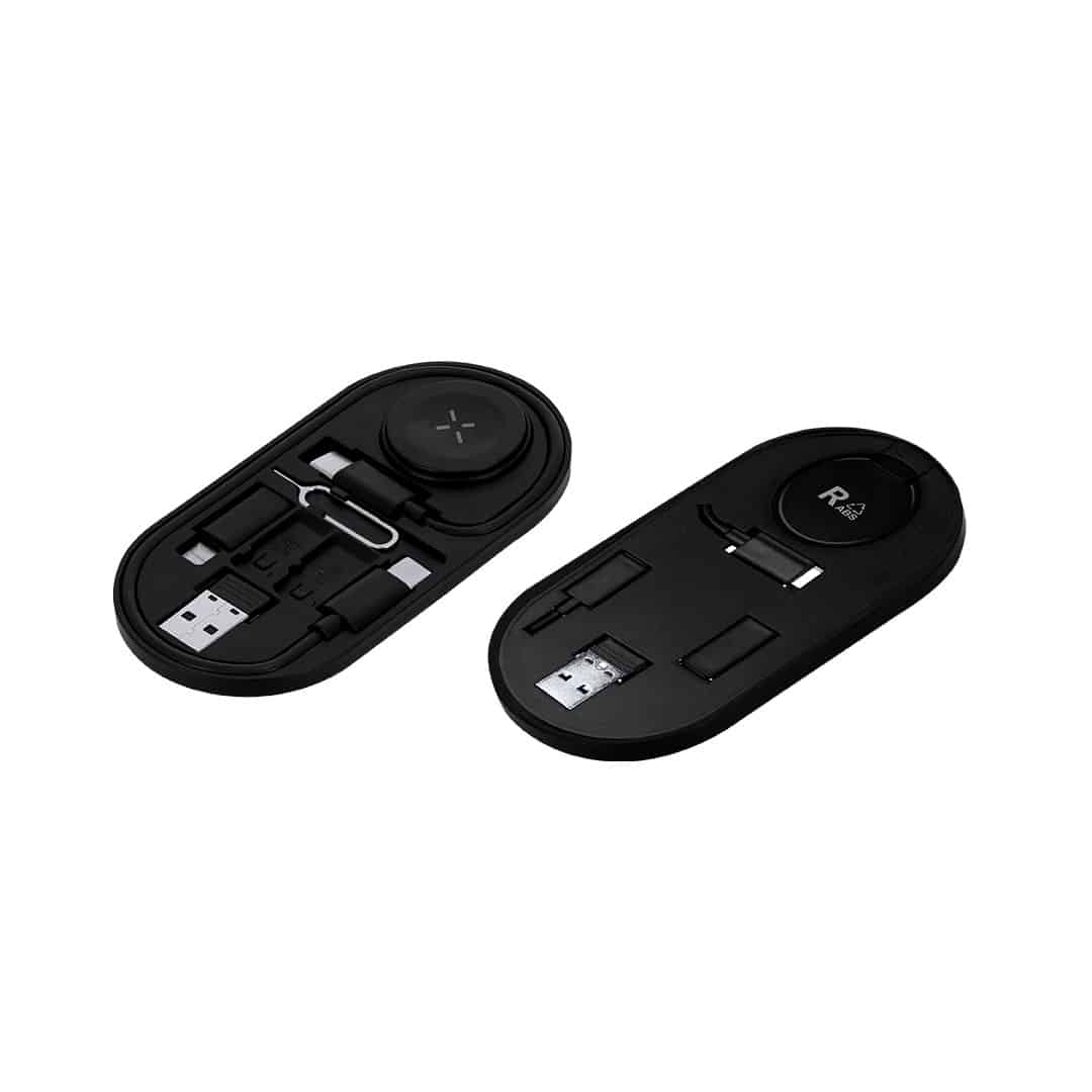 Descubre el Set de Cables Cargadores Nebrex, una solución sostenible y multifuncional para tus necesidades tecnológicas. Este set incluye una base de carga inalámbrica para smartwatch, un cable multifunción con conectores USB, Tipo-C y Lightning, y un práctico pin eyector de SIM con ranuras para almacenar Nano SIM y tarjetas TF. Fabricado en ABS Reciclado (RABS), un material eco-friendly de alta resistencia y plenamente reciclable, este set no solo es práctico, sino también responsable con el medio ambiente. ¡Potencia tu estilo de vida tech y cuida del planeta al mismo tiempo! Haz clic en el botón Comprar con Impresión para ver las opciones de marcado y personalización.