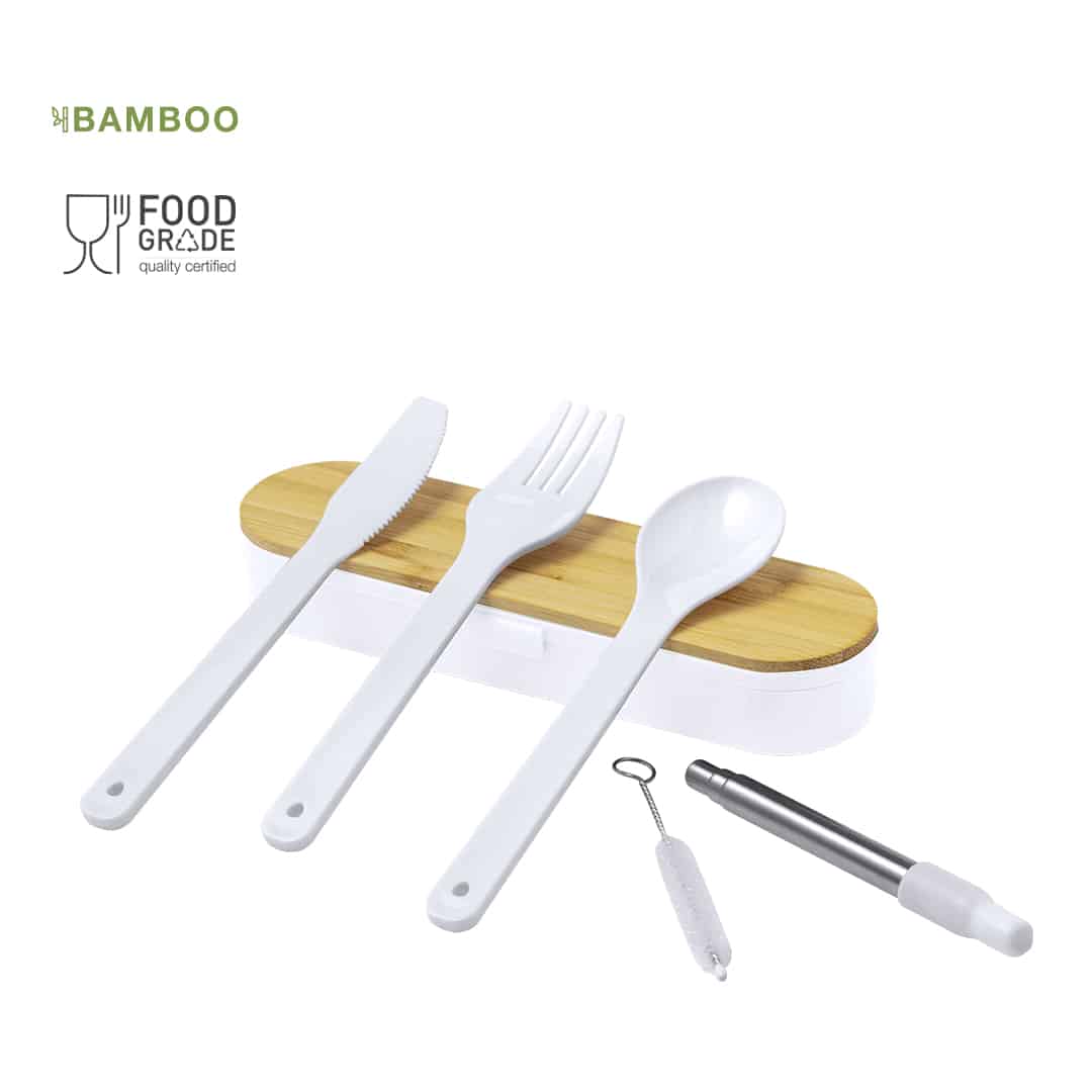 Descubre el Set de Cubiertos Milner, un elegante artículo promocional ideal para potenciar tu imagen corporativa. Fabricado en PP libre de BPA y presentado en un estuche de bambú, este set incluye cuchara, tenedor, cuchillo y pajita plegable, todo con la Certificación Food Grade. Perfecto como regalo corporativo, combina funcionalidad y sostenibilidad, ayudando a tu empresa a destacar con un merchandising promocional responsable y atractivo. ¡Haz que tus clientes se sientan especiales con este regalo único!