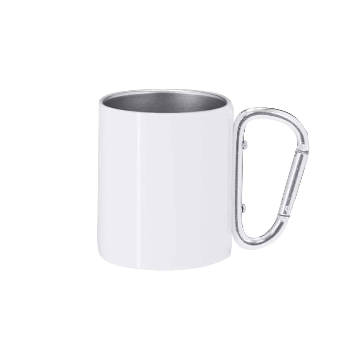 Descubre la Taza Sublimación Beesbur, una práctica y elegante taza de acero inoxidable de 220ml. Su acabado blanco brillante metálico y su asa en forma de mosquetón la hacen ideal para llevar a cualquier lugar. Perfecta para personalizar con tus diseños, es el regalo promocional que cautivará a tus clientes y empleados. ¡No te quedes sin la tuya!