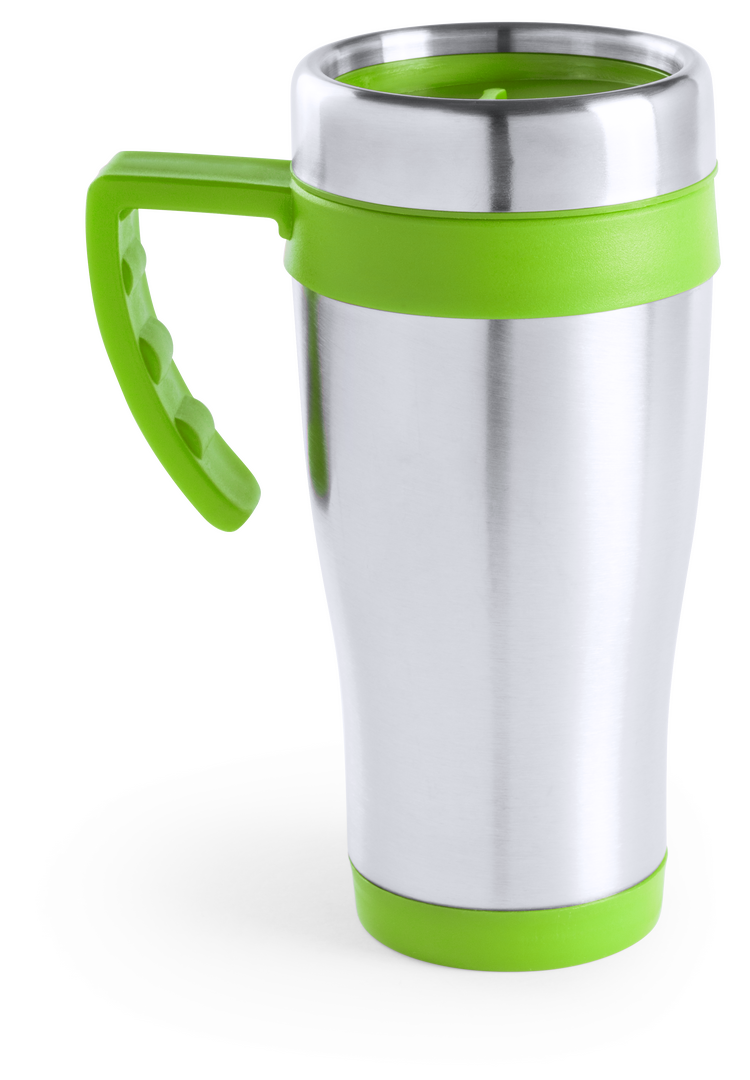 Taza fabricada en acero inox de 450ml de capacidad con cuerpo de acabado brillante con accesorios a juego y en vivos colores. Con tapa dosificador y abrefácil. Es ideal para tener en tu escritorio, mesa o en cualquier superficie donde disfrutar tranquilamente de tu bebida favorita.