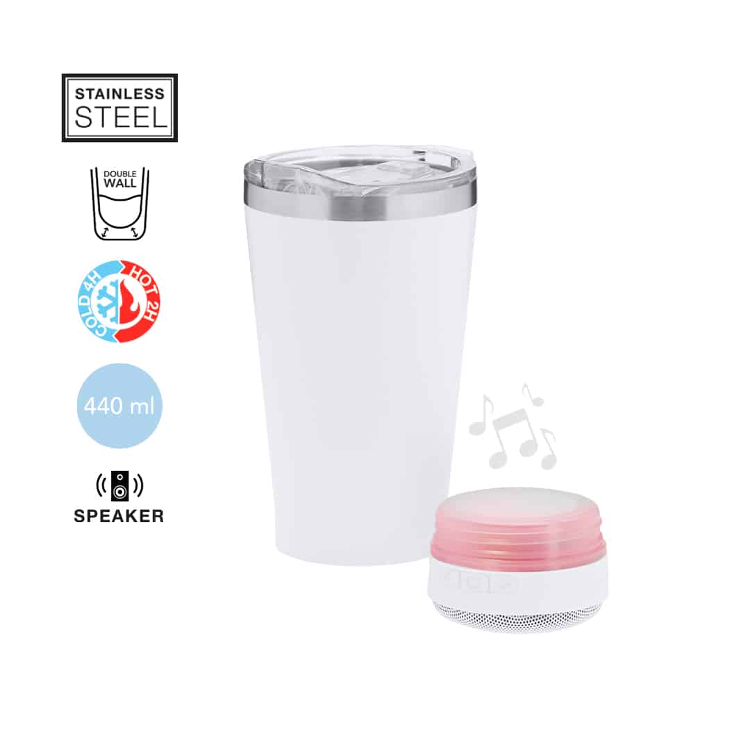 Descubre el Vaso Térmico Altavoz Tandix, una innovadora combinación de funcionalidad y estilo. Con su capacidad de 440 ml y fabricado en acero inoxidable de doble pared, este vaso asegura que tus bebidas se mantengan a la temperatura ideal, ya sean frías o calientes. Perfecto para el hogar o la oficina, incluye un altavoz Bluetooth 5.3 de 3W extraíble, que te permitirá disfrutar de tu música favorita con una iluminación LED RGB que sigue el ritmo. Además, su diseño práctico, con dosificador y base antideslizante, lo convierte en el compañero perfecto para cualquier actividad. ¡Convierte cada sorbo en una experiencia inolvidable! Haz clic en el botón Comprar con Impresión para ver las opciones de marcado y personalización.
