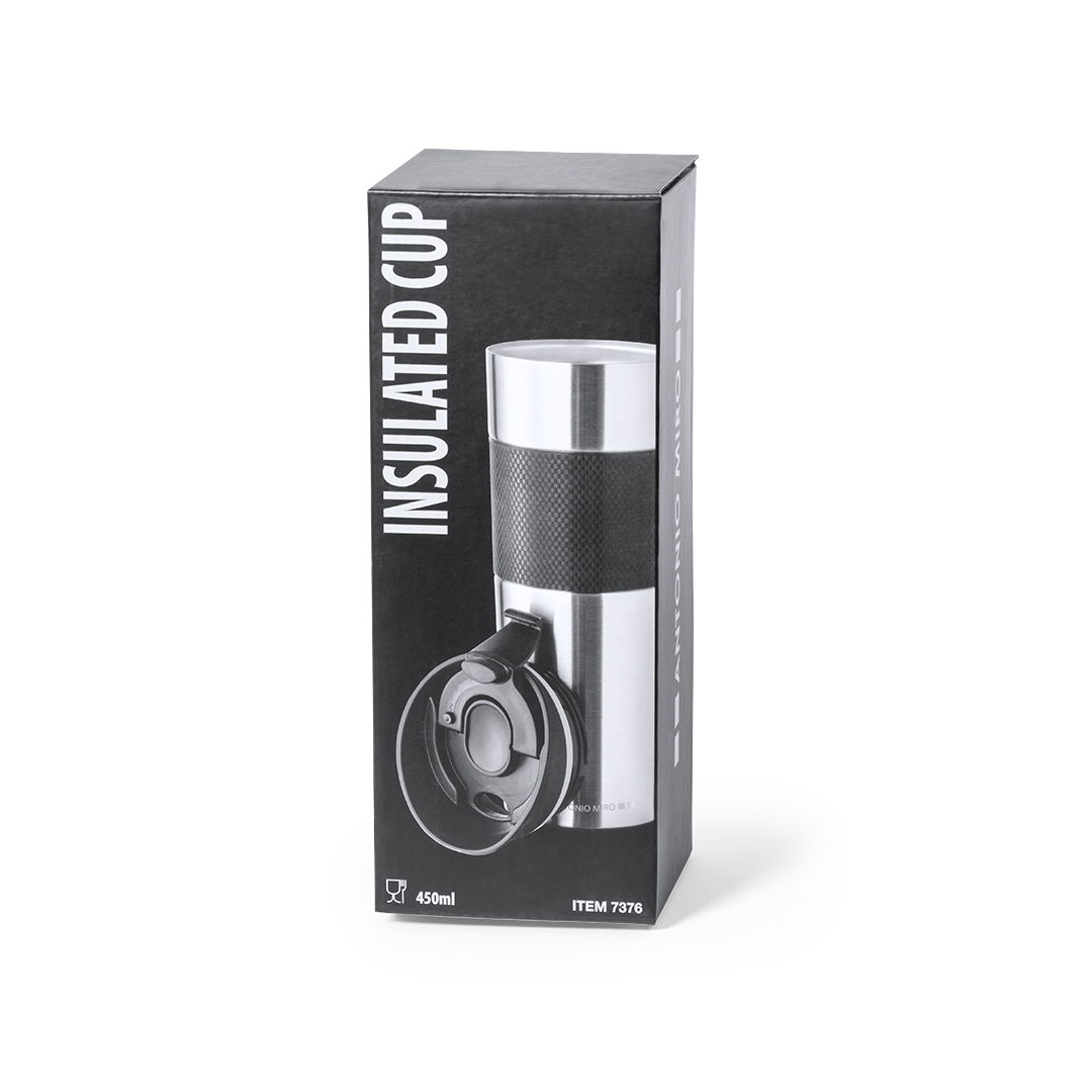 Descubre el Vaso Térmico Reley de Antonio Miró, un artículo promocional perfecto para tu empresa. Fabricado en acero inoxidable de doble pared, cuenta con una capacidad de 450 ml, ideal para mantener tus bebidas a la temperatura perfecta en cualquier lugar. Su diseño elegante con acabado mate y logotipo de la marca lo convierte en un regalo corporativo atractivo que destaca tu imagen de marca. Presentado en una elegante caja negra, este vaso es el merchandising promocional que necesitas para impresionar a tus clientes y empleados. ¡Haz que cada sorbo cuente!